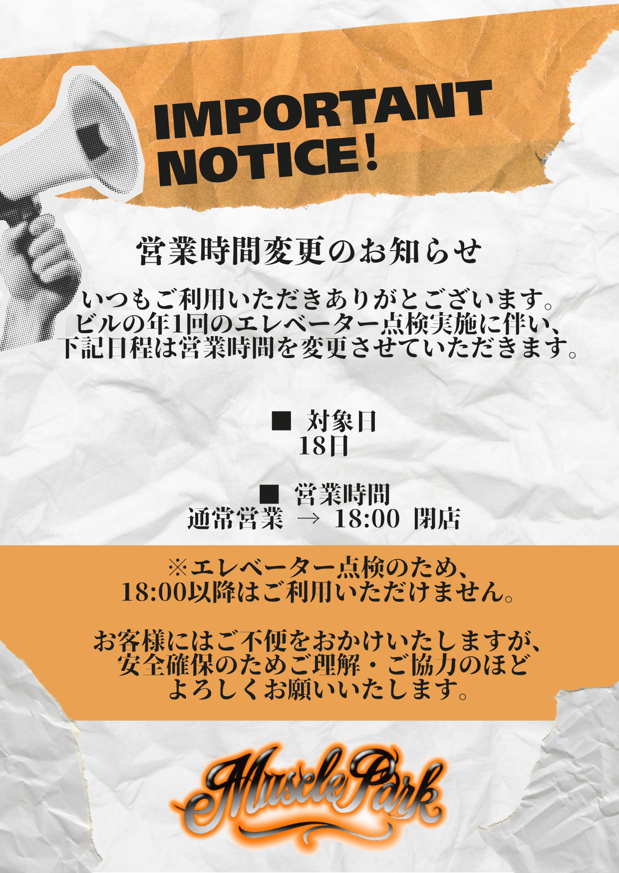 いつもMuscle Parkをご利用いただきありがとうございます。